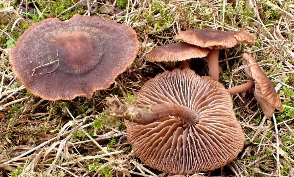 Im Mai des folgenden Jahres erschienen die Pilze wieder an der gleichen Stelle, wiederum in großer Zahl. Diesmal konnte auch die harte Sklerotienknolle an der Stielbasis erkannt werden (siehe 2. Foto oben).
