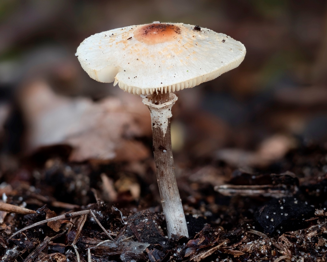 Lepiota subalba = Cremeweißer Schirmling: auch die Schüppchen auf dem Hut sind cremefarben